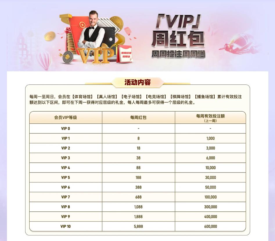 VIP周红包,周周投注周周送