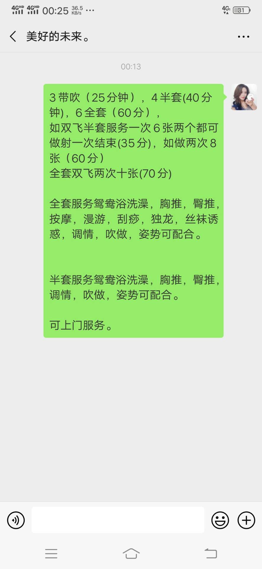 【寻欢时间】:2019年6月7日 【寻欢地点】:义乌龙回附近 【信息来源】:狼友推荐、亲身体验 【服务项目】:漫游 毒龙 胸推,69式,,口活,爱爱、可双飞 【环境设备】:干净 【营业时间】: 【价格一览】:300/次或XX/天等 【安全评估】:评分,满分100。 【服务星级】:★★★★(最高5星)应适当评价质量 【重点推荐】:最值得推荐的地方以供参考 【联系方式】: [unfree]q 2139433892[/unfree] 【寻欢细节】:300一炮也还行 适合泻火 不知道怎么设置金币麻烦管理弄下谢谢 【附带照片】: 【验证截图】:
