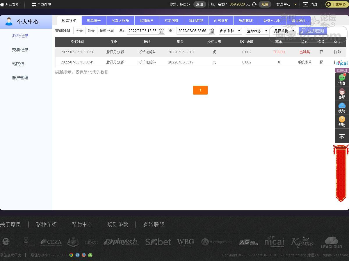 今天去腾讯彩票投注