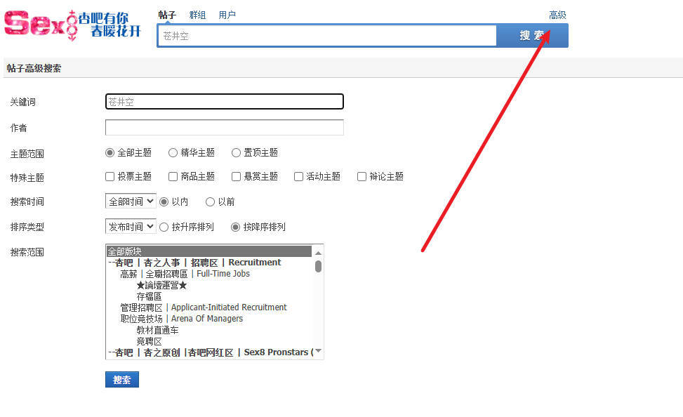 搜索栏那里的高级选项