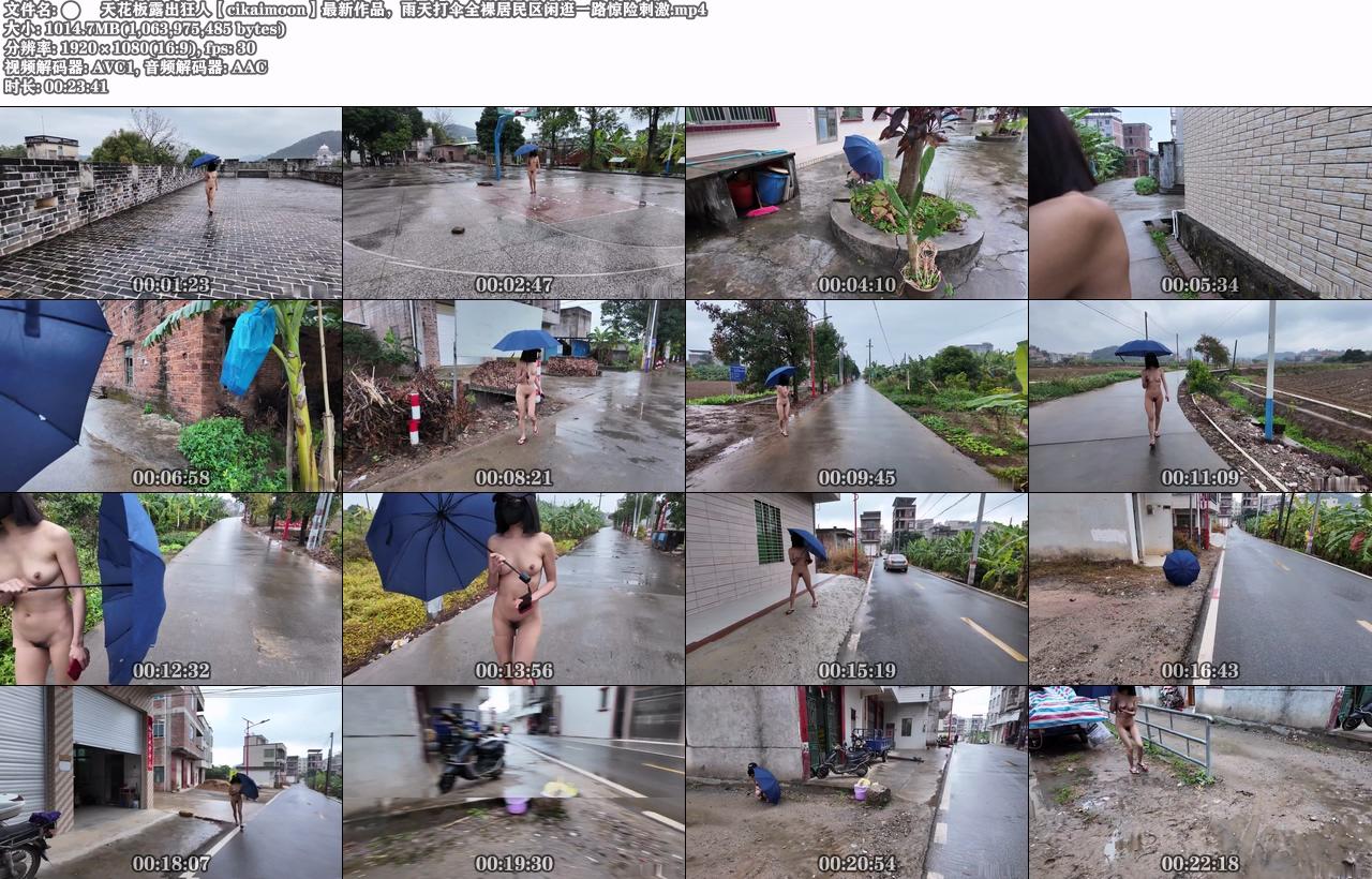 ⚫️天花板露出狂人【cikaimoon】最新作品,雨天打伞全裸居民区闲逛一路惊险刺激【23:41/WF】