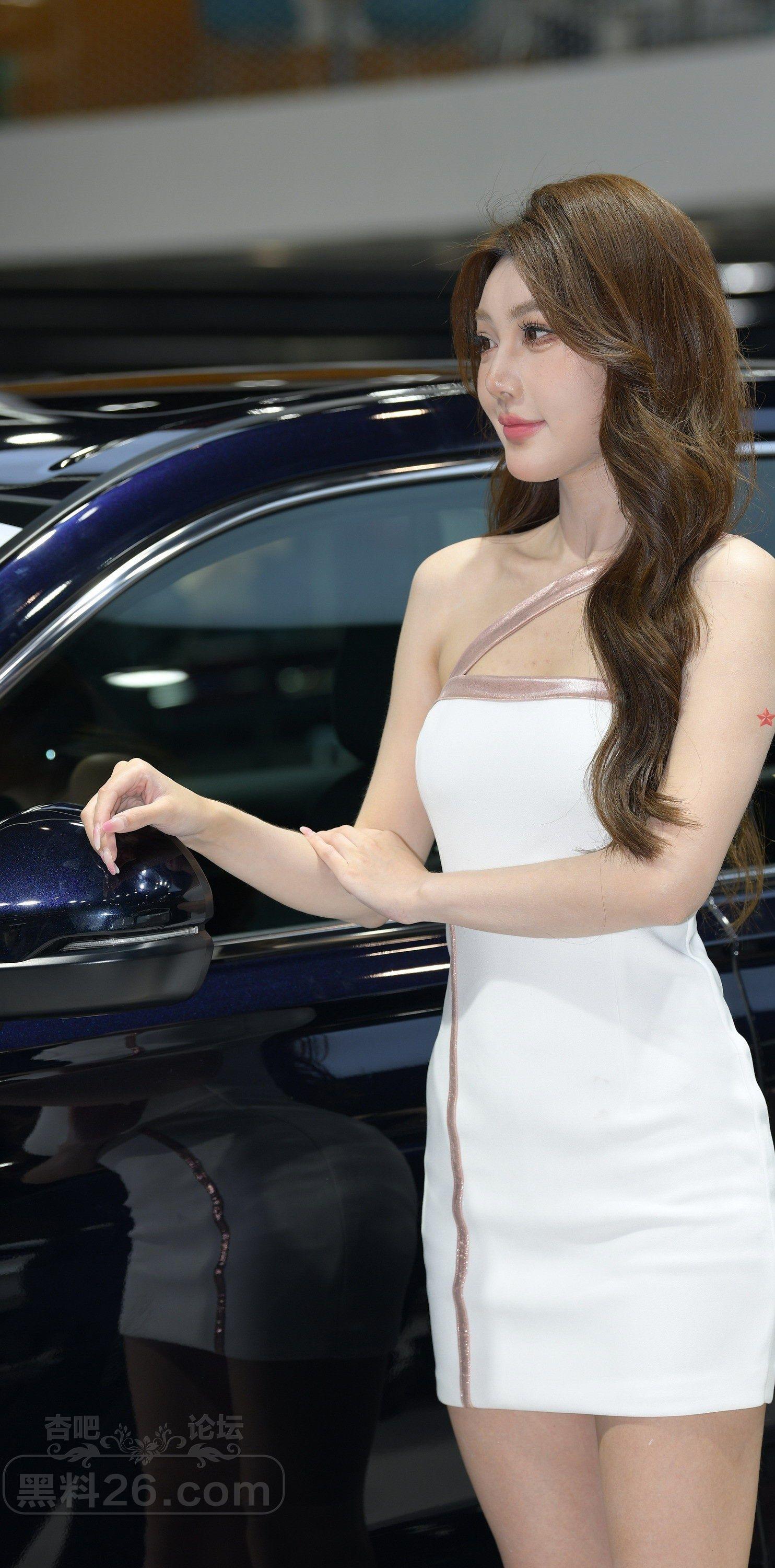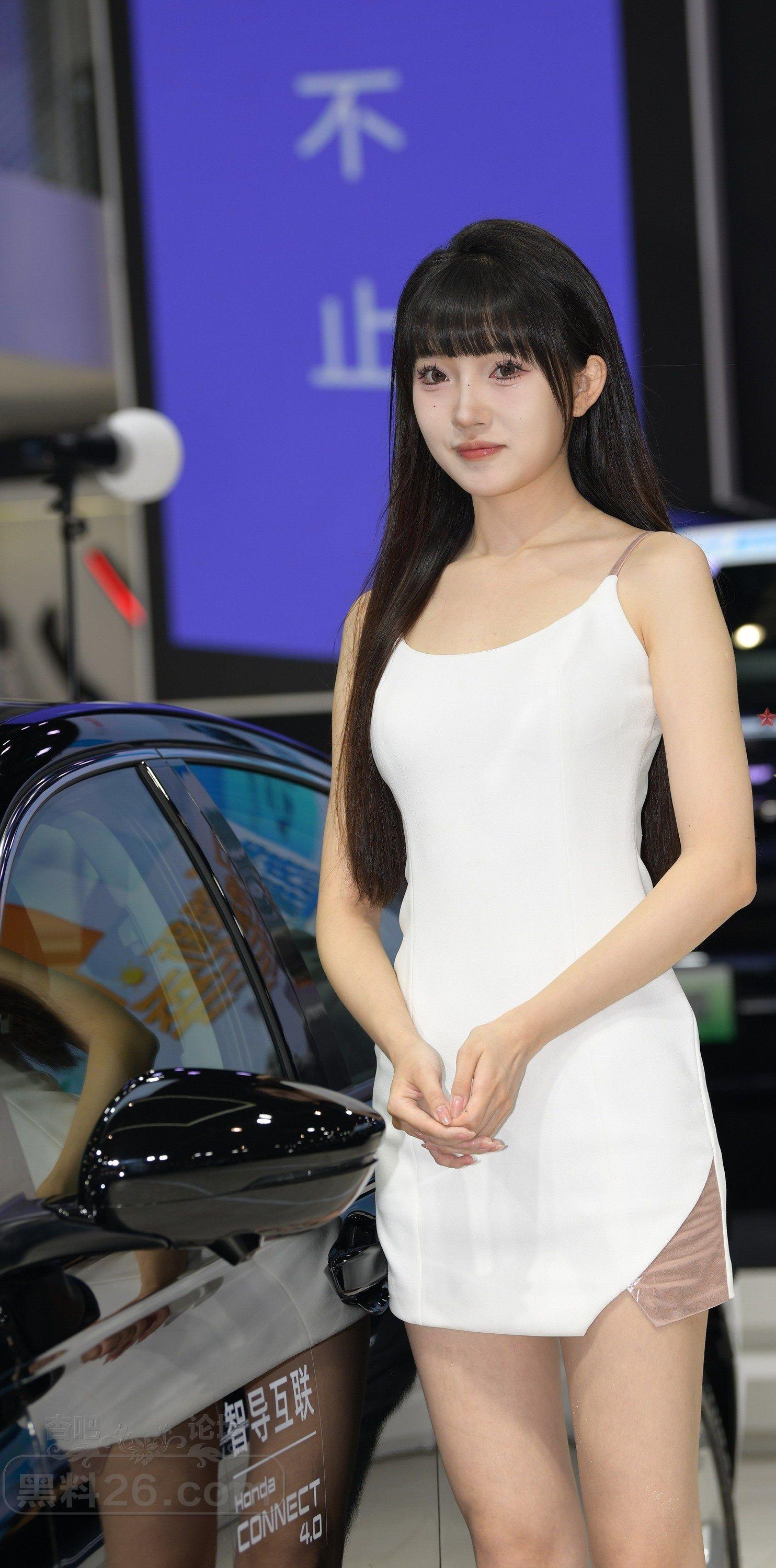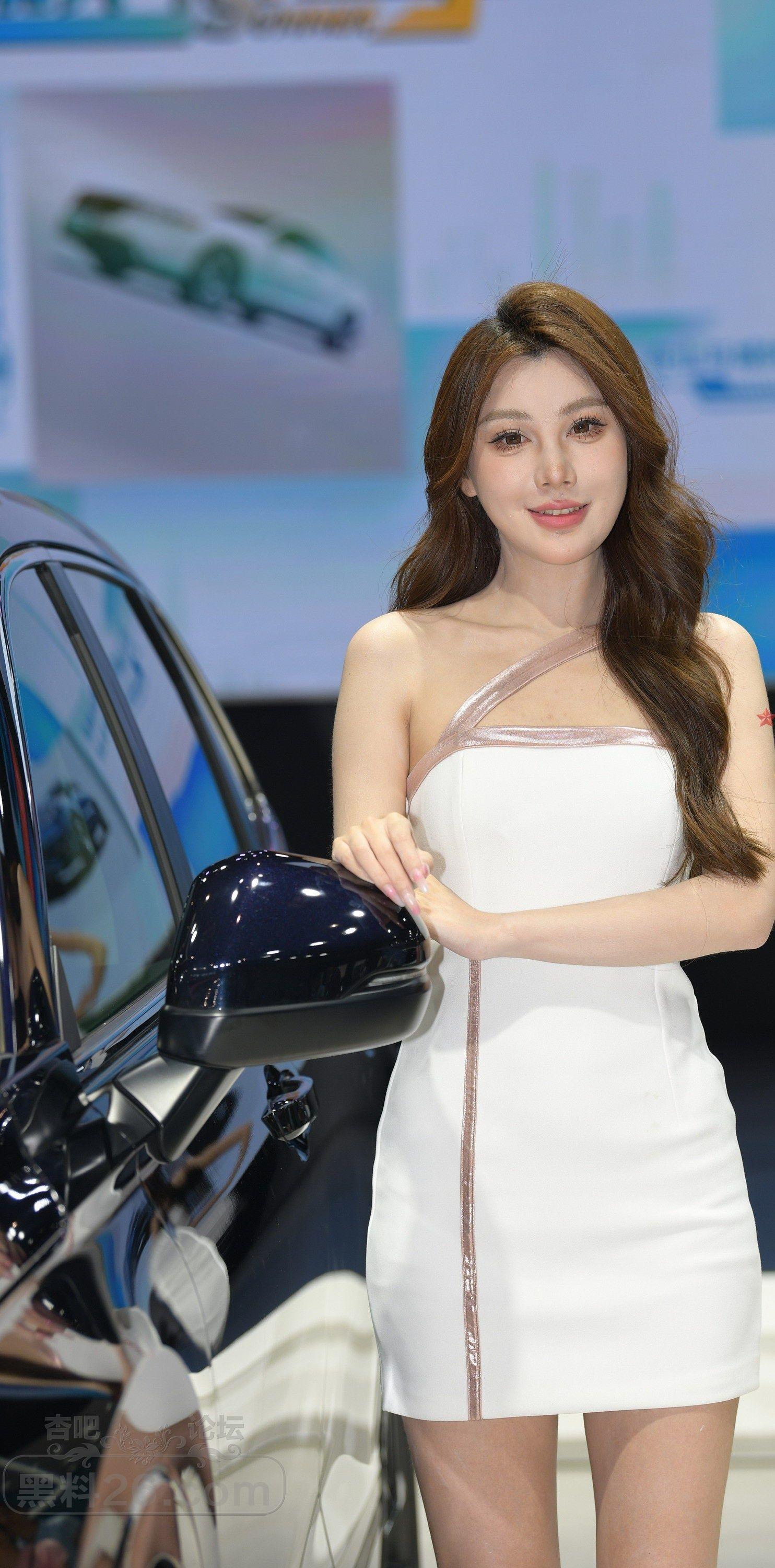 白色斜肩连衣短裙美女车模莺莺燕燕【10P】