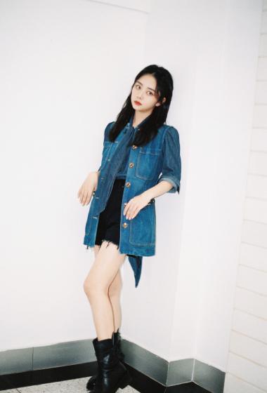[明星写真] 美女谭松韵牛仔上衣黑色长靴白皙美腿不错【10P】 |