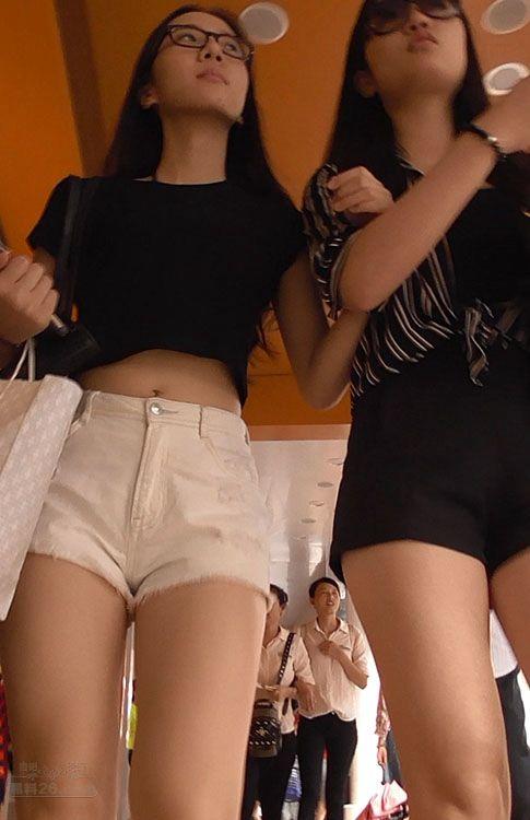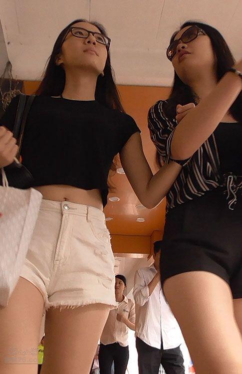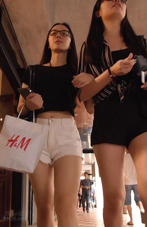 街拍高挑长发带眼镜的美少女,性感热裤大长腿【24P】