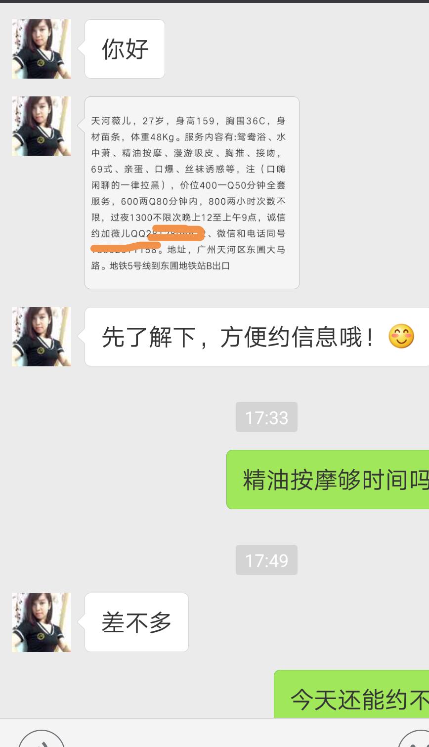 [天河区] 2017年10月联系,东圃薇儿 |